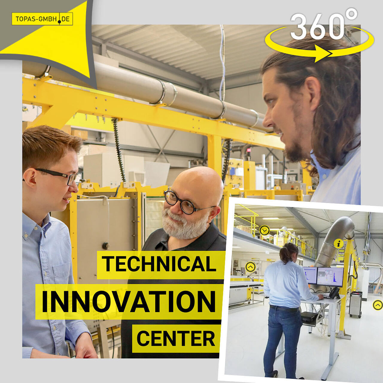 Im TIC, unserem Technical Innovation Center, stehen Ihnen die Türen offen: Führen Sie Messungen an unseren Prüfständen durch und erfahren Sie mehr über die Leistungskennzahlen Ihres Produktes. Qualifizieren Sie Ihre Produkte auf diese Weise selbst. Darüber hinaus können auch Schulungen, z.B. für neue Bediener an diesen Systemen, durch erfahrene Topas-Ingenieure angeboten werden. Im kürzlich neu eröffneten Zuhause der Topas-Academy, Wirkort unserer Entwickler und Forscher, stehen Ihnen moderne Schulungsräume und Demonstrations- und Messtechnologie für Ihre Vorhaben zur Verfügung. Bitte schreiben Sie uns oder finden Sie weitere Antworten unter Technical Innovation Center.
