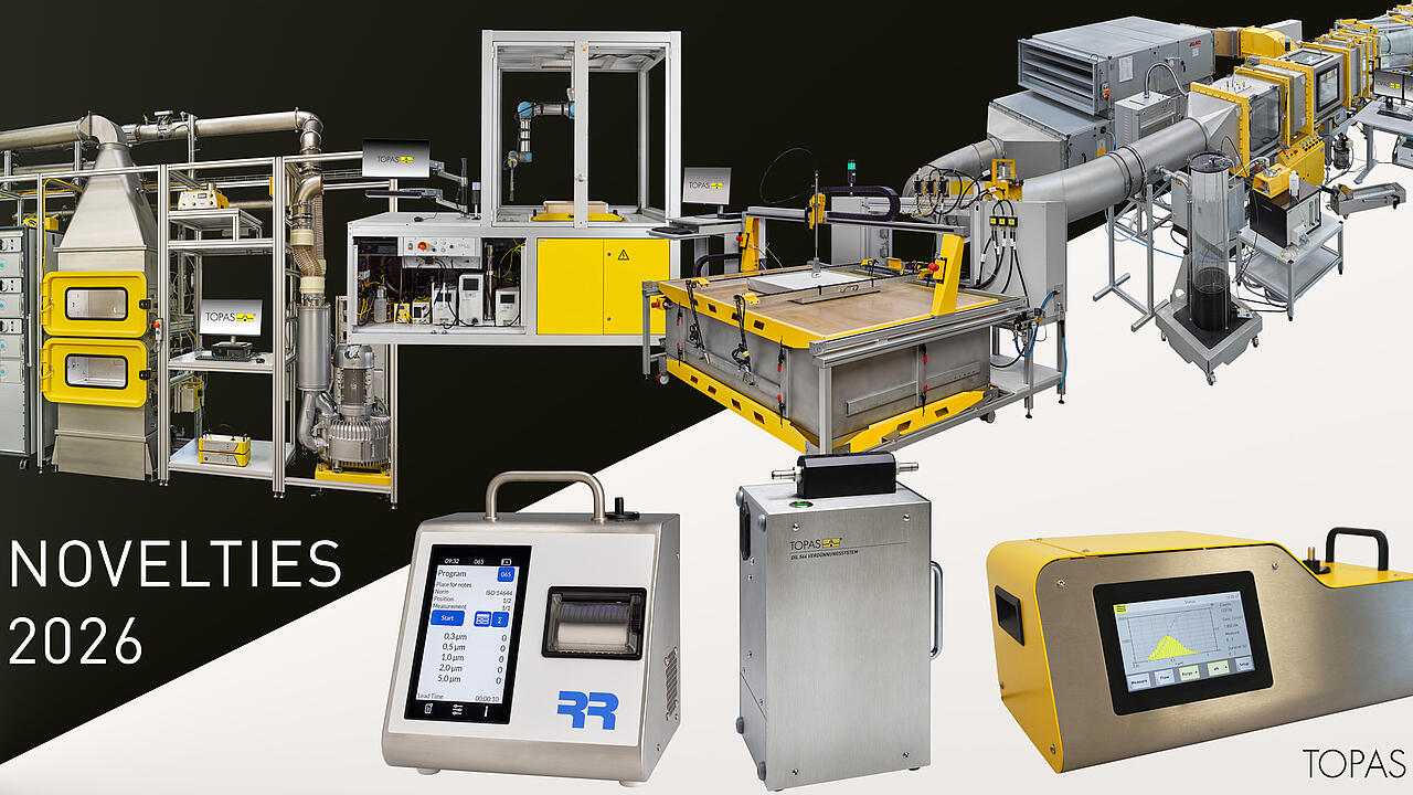 Since more than 30 years, technology-oriented particle, analysis and sensor systems have been developed, designed and manufactured under the name Topas. They can be used to generate, condition and analyse test and reference aerosols. In addition, more than 60 series devices and 20 test systems of our medium-sized Saxon company have been widely used and proven for the classification and testing of filters and filter media in worldwide industry and basic research for decades.